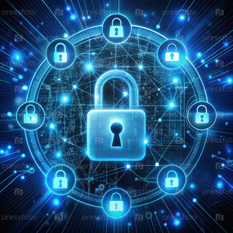Цифровая блокировка, защищающая глобальную сеть Кибербезопасность. генеративный цифровой ИИ