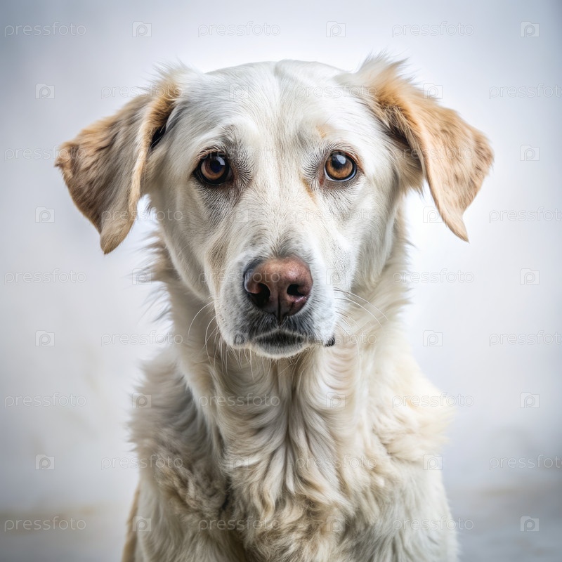 Белая собака смотрит прямо в камеру. генеративный ИИ
