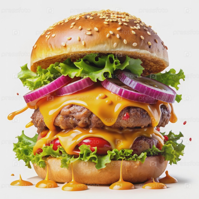 Вкусный двойной чизбургер с начинкой и расплавленным сыром
