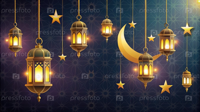 Фонари Рамадана висят на звездном ночном небе