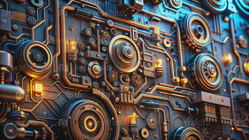 Ближайшее изображение детальной машины Steampunk со светящимися огнями
