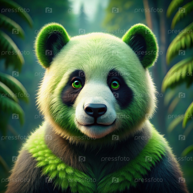 Портрет зеленой панды в пышном лесу. генеративный ИИ