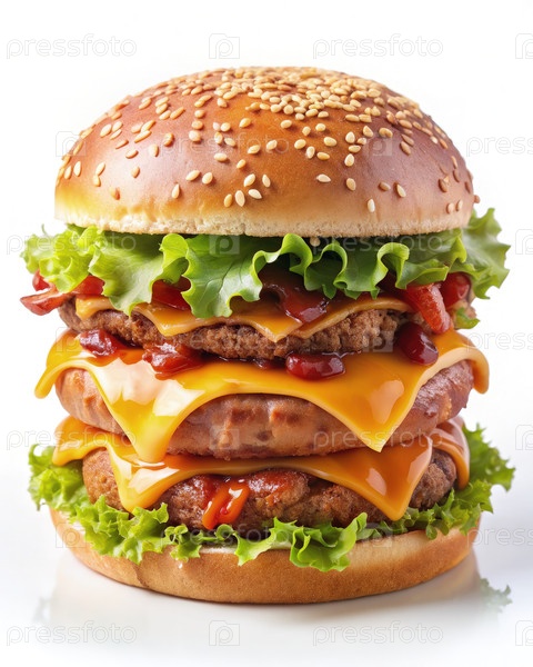 Близкий взгляд на сочный двойной чизбургер с расплавленным сыром