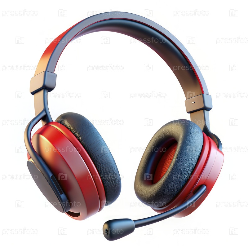 Черно-красный игровой гарнитур с микрофоном, изолированным на белом фоне