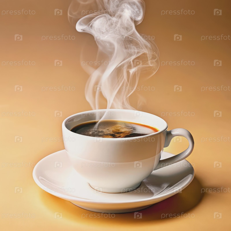 Чашка свежеприготовленного кофе, испаряющегося на тарелке