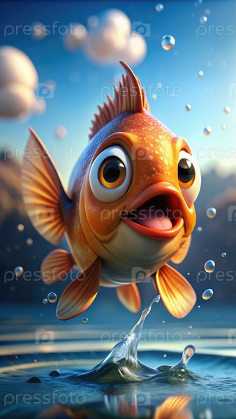 Веселая мультфильм рыба прыгает из воды