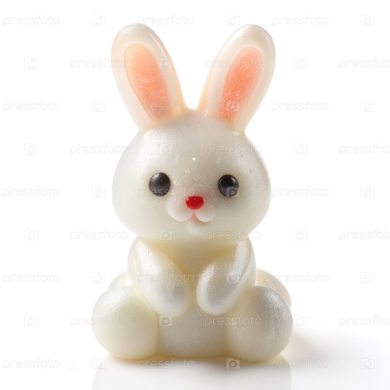Белый желе гуминный кролик, сидящий на белом фоне