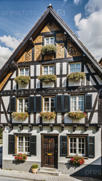 Традиционный полудеревянный дом в немецкой деревне в солнечный день