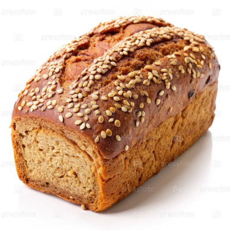 Свежевыпеченный цельнозерновой хлеб с семенами кунжута на белом фоне