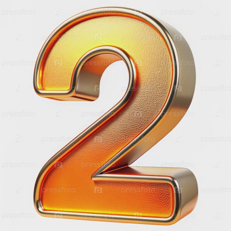Золотой номер два с текстурированной поверхностью и светящимся интерьером. генеративный ИИ