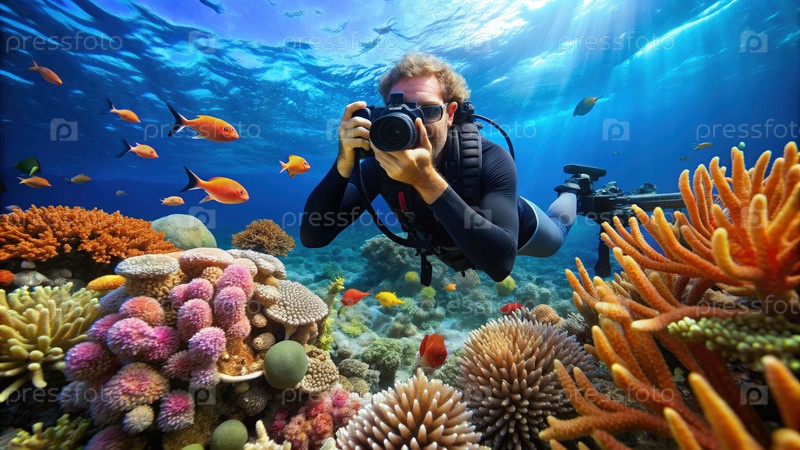 Подводный фотограф захватывает яркий коралловый риф. генеративная ИИ