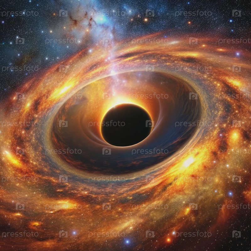 Гравитационное притяжение черной дыры в центре галактики. генеративный ИИ A