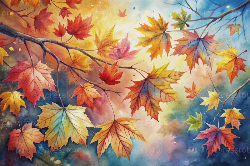 Живая акварельная живопись осенних кленовых листьев. генеративный ИИ