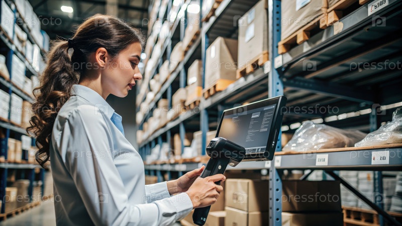 Специалист по инвентаризации, использующий портативный сканер на складе