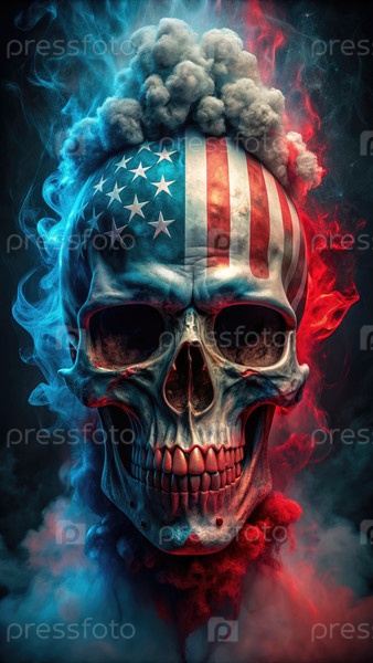 Американский череп с дымом и пламенем. генеративный ИИ