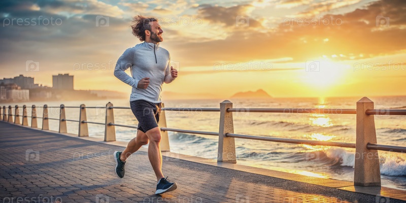 Человек, бегущий по прибрежной тропе на восходе солнца