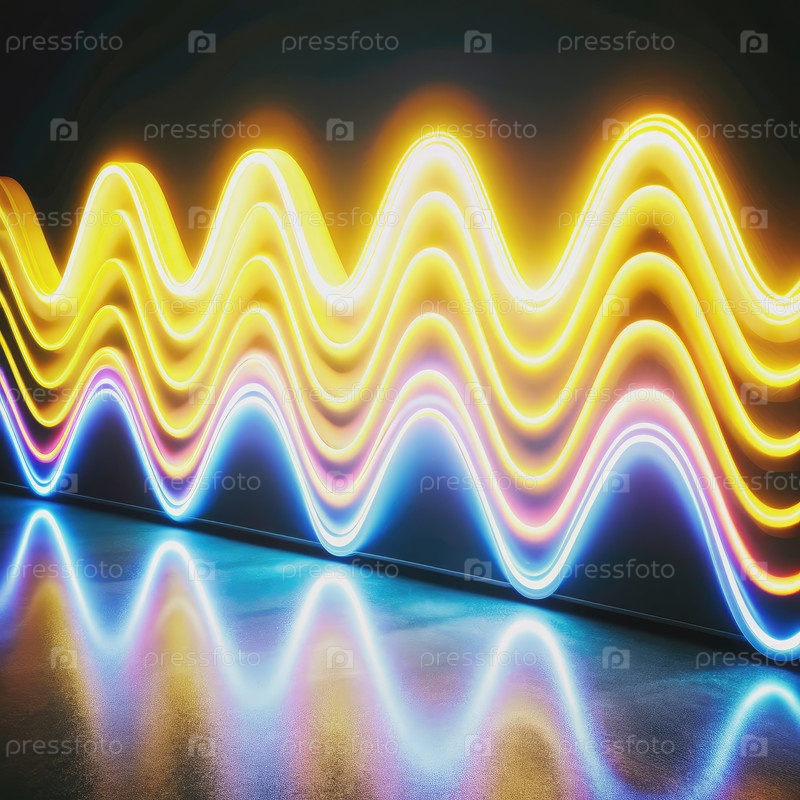 Инсталляция неоновых волн в темной комнате. генеративный ИИ
