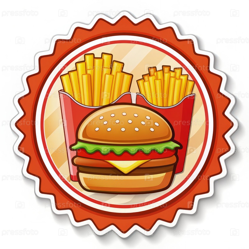 Дизайн наклейки для мультфильмов быстрого питания с чизбургером и картофелем фри