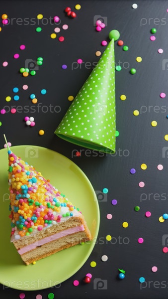 Плоское празднование дня рождения с тортом и партийной шляпой. генератив AI
