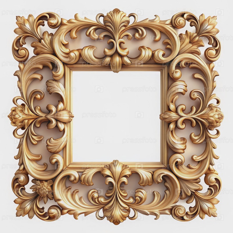 Украшенная золотой барокко рамка изолирована на белом фоне