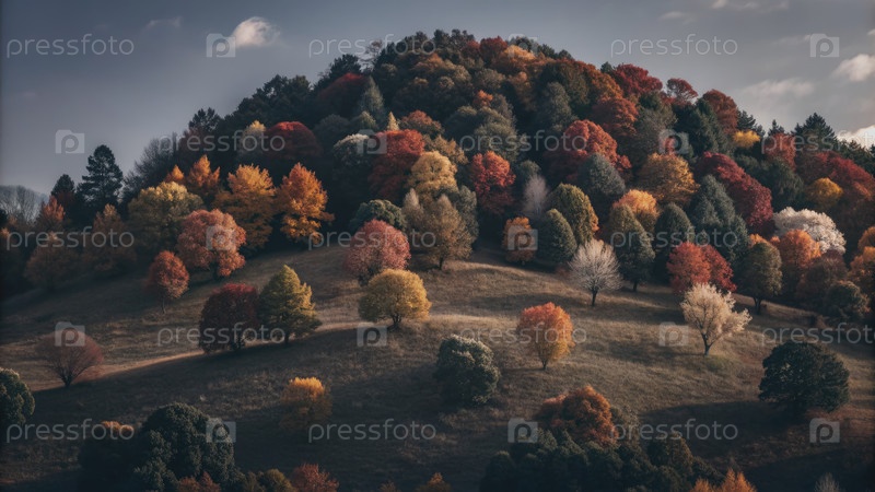 Живые осенние деревья на склоне холма