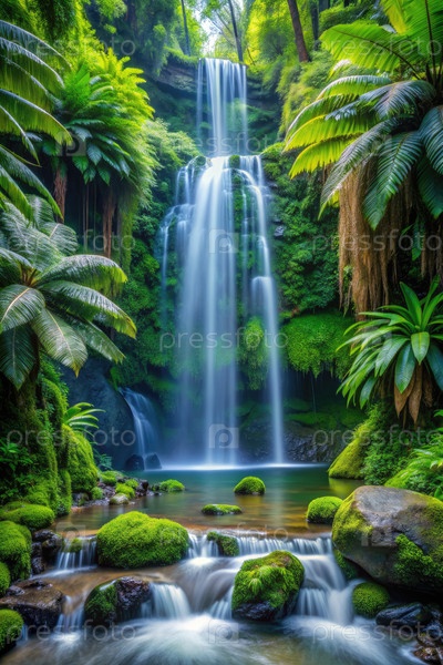 Водопад из пышного дождевого леса в Австралии. генеративный ИИ