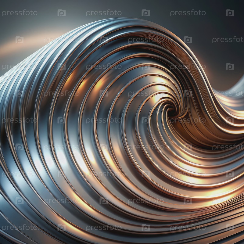 Абстрактная блестящая металлическая скульптура с дизайном круговой волны. генеративный абстрактный ИИ