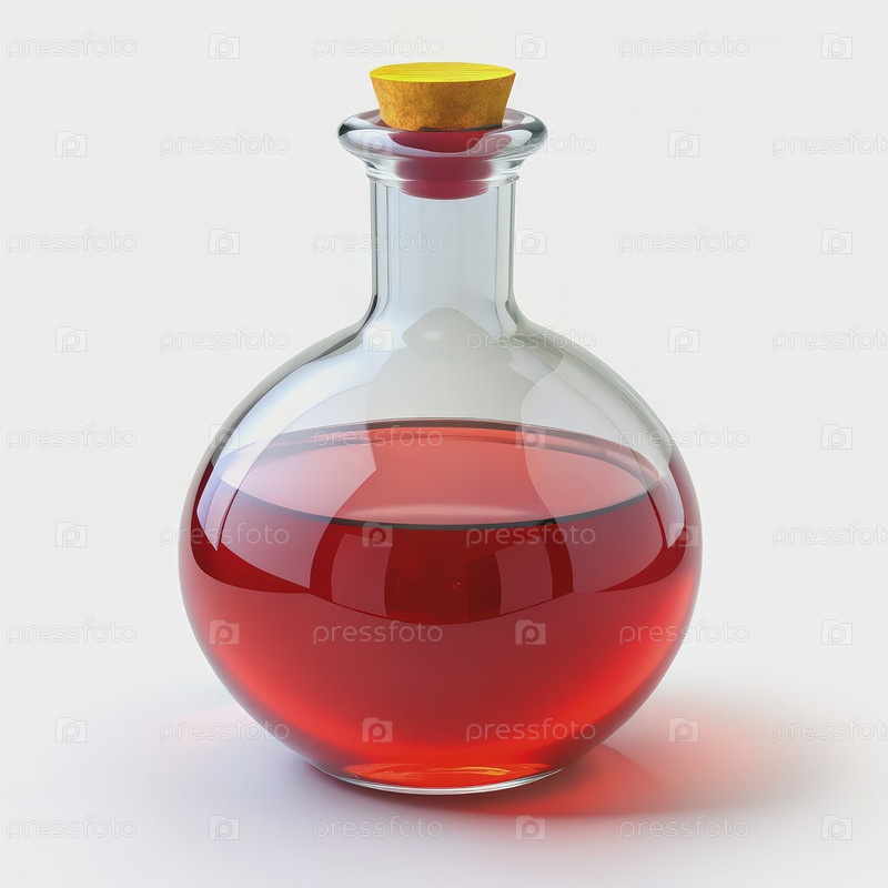 Бутылка, заполненная красной жидкостью на белом фоне