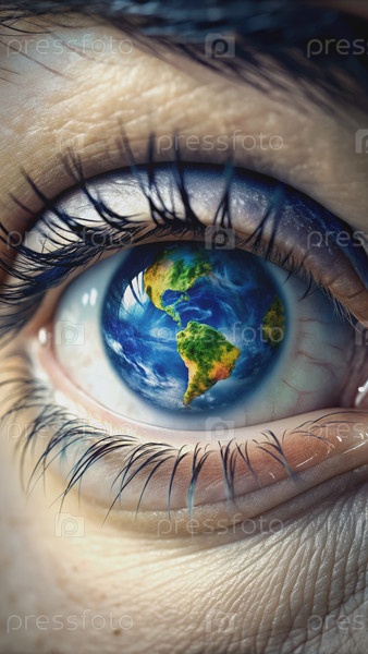 Близкий взгляд на человеческий глаз с землей, отражающейся в зрачке. генеративный ИИ