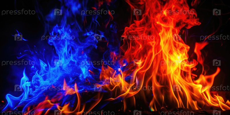 Вибрирующие синие и красные пламени танцуют на темном фоне