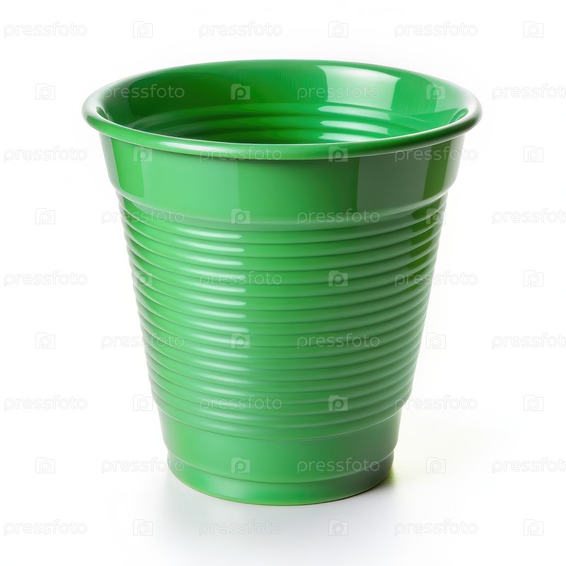 Пустой зеленый пластиковый стакан, изолированный на белом фоне