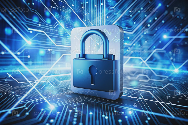 Безопасный цифровой замок на заднем плане платы с схемой