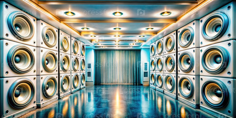 Комната домашнего кинотеатра с несколькими динамиками и отложенным освещением. генерирующий современный ИИ