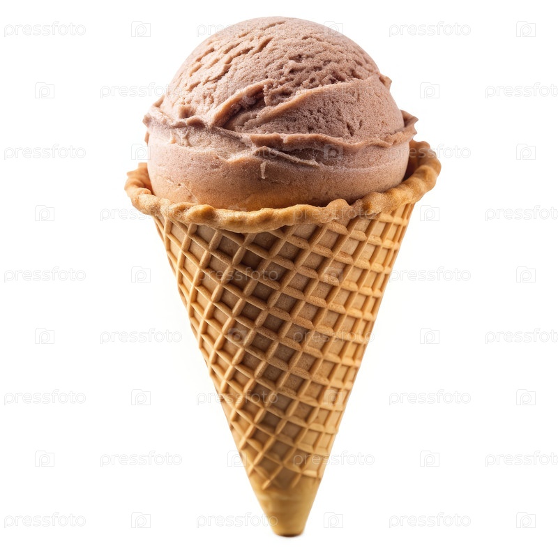 Одинокая ложка шоколадного мороженого в конусе вафли