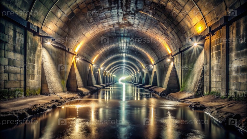 Конкретный канализационный тоннель с протекающей через него водой. генеративная ИИ