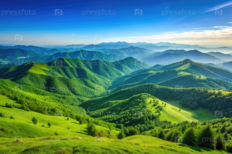 Rolling Green Hills и Clear Blue Sky в горном хребте. генеративный ИИ