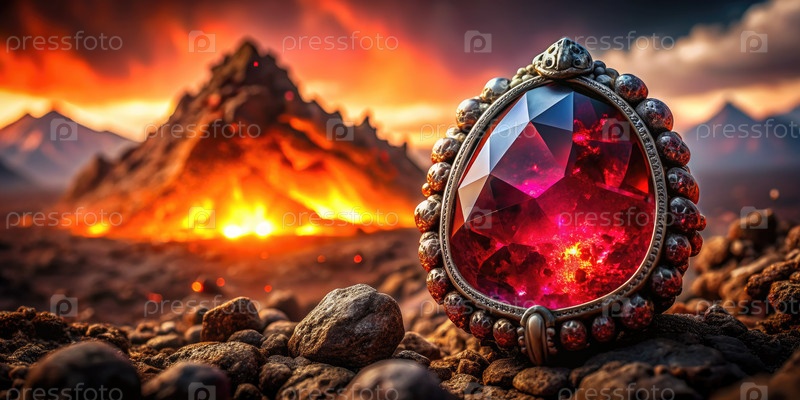 Красная драгоценность посреди вулканического извержения