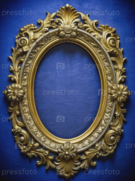 Оформленная золотой барокко рамка с голубым фоном