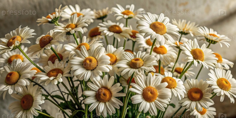 Близкий взгляд на букет маргариток с белыми лепестками и желтым центром