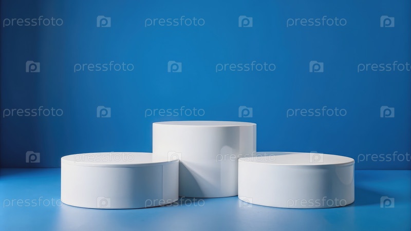 Три белых подиума на синем фоне