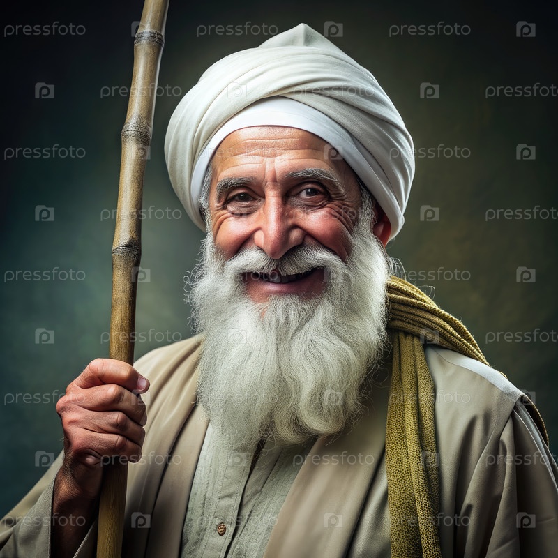 Улыбающийся исламский мудрец, держащий посох
