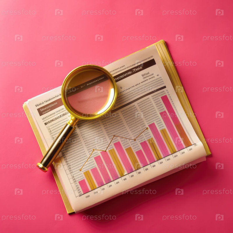 Увеличивающее стекло на бумажном графике бизнес-анализа