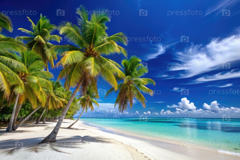 Спокойные пальмы, раскачивающиеся на чистом белом песчаном пляже
