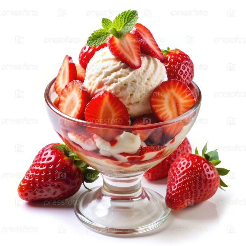 Вкусная клубничная сунда с сытым сливком и мятой. генератив AI