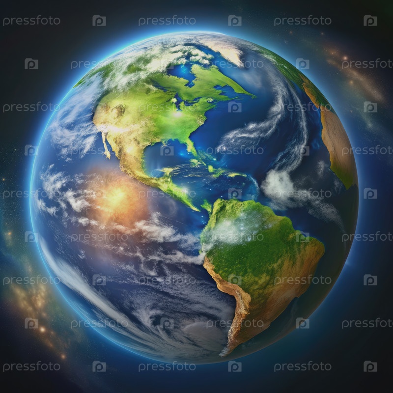Подробный взгляд на Землю из космоса с Северной и Южной Америкой