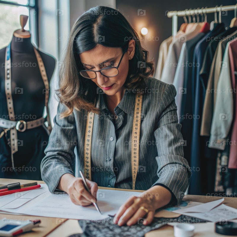 Фокусированный дизайнер моды создает образец в своей студии