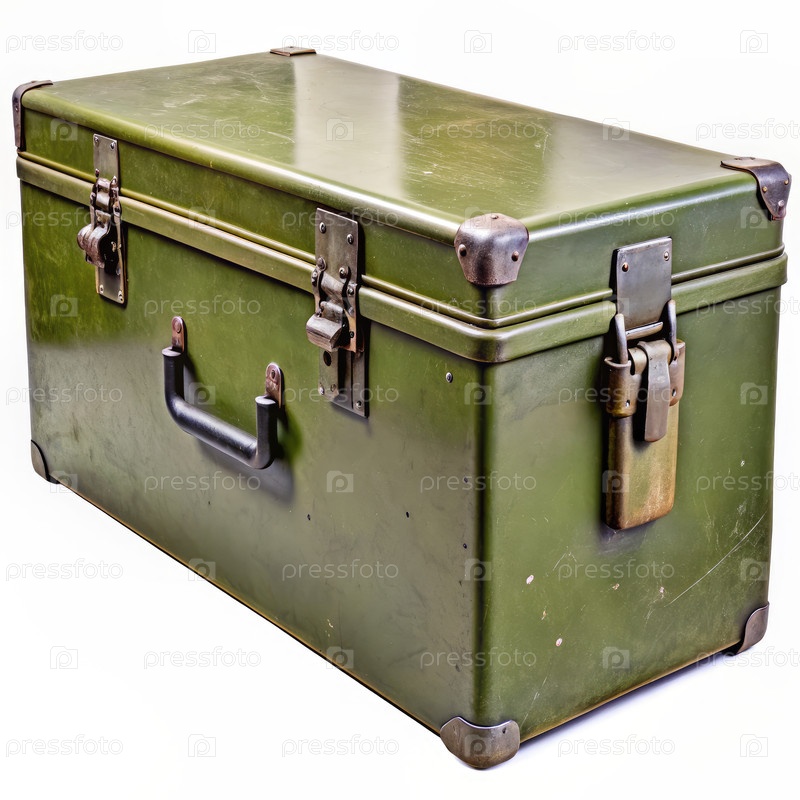 Зеленый военный металлический ящик с крючками и скобками. генеративная AI
