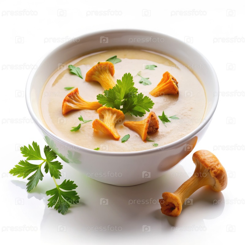 Кремный суп из Chanterelle с заправкой персиком. генеративная AI