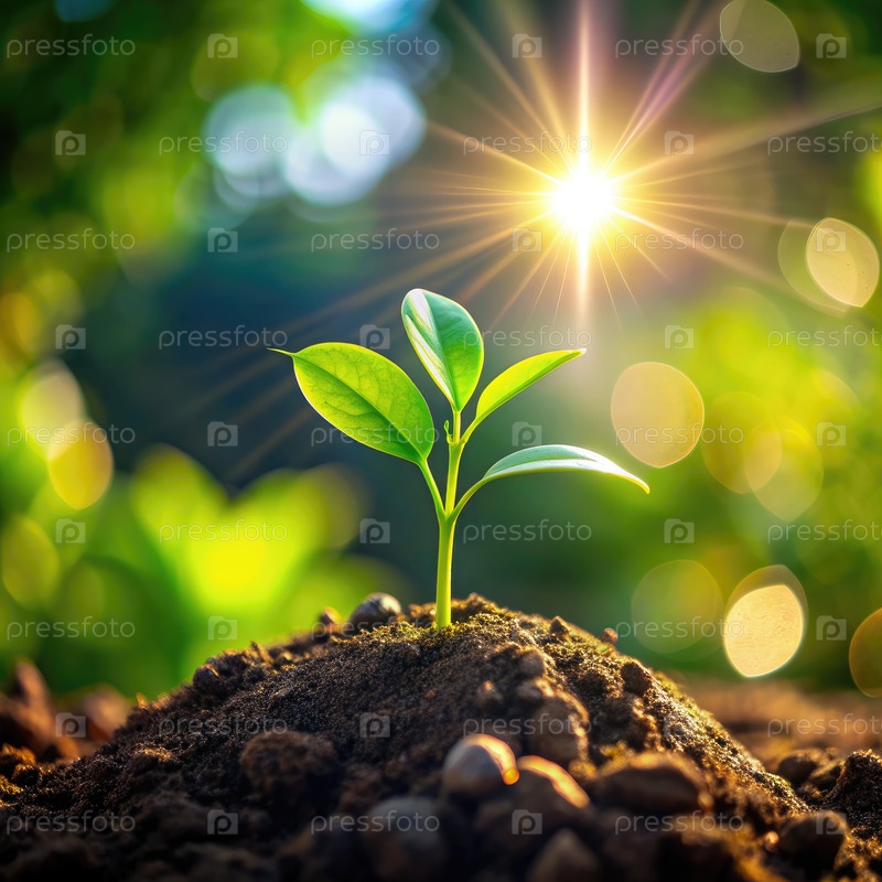 Небольшое растение, выходящее из земли на утреннем солнце