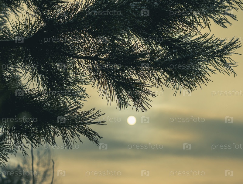 Солнце за ветками сосны